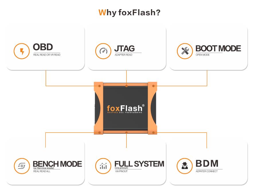 FoxFlash is a powerful solution developed for professional chiptuners, calibration engineers and control unit (ECU and TCU) repair shops. foxFlash includes multi-method control unit programming for tuning ability,this tool from tuner design ,so you can get many of them support. Since the FoxFlash is so much more than just an ECU programming tool, it simply can't be compared to any traditional flash tool. Despite other tools how good, this is being good tools for read/write operations, we supply many important features, both on the developer side as in daily use. That is why we recommend FoxFlash.